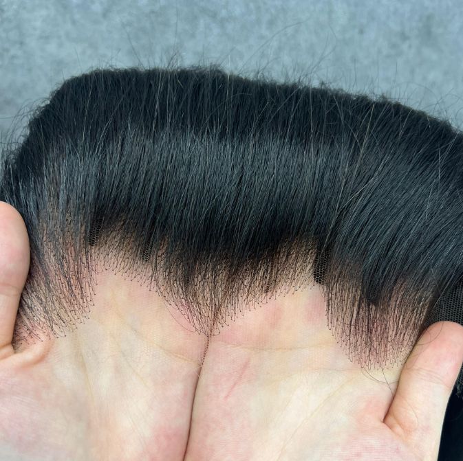 La dentelle est un filet très fin et respirant (généralement en dentelle) sur lequel les cheveux sont implantés mèche par mèche pour former une perruque.